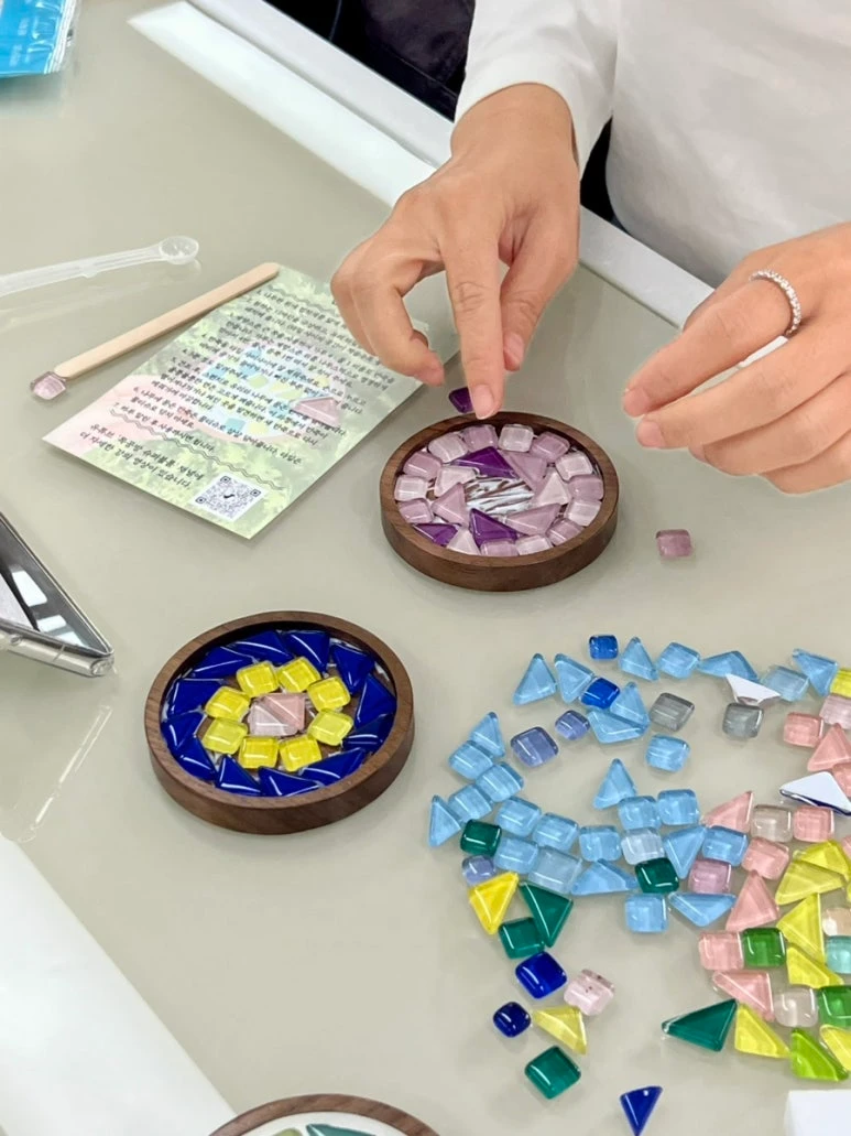 나무 트레이 위에 타일을 배치하고 마감하는 과정을 통해 각자의 개성을 담은 실용적인 테이블 소품을 완성합니다.